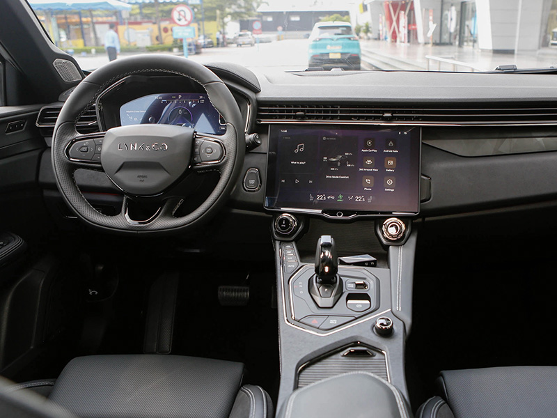 Phanh tay điện tử kèm theo tính năng auto hold & Cần số điện tử trên Lynk & Co 01 được thiết kế theo công thái học giúp người lái dễ dàng thao tác.